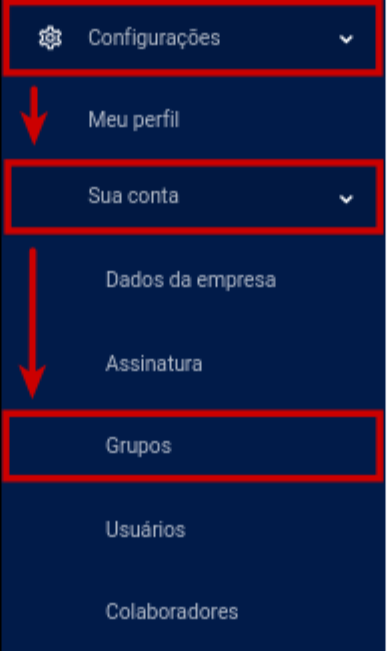 Passo 1: Para acessar a tela de grupos, basta ir em Configurações » Sua conta » Grupos
