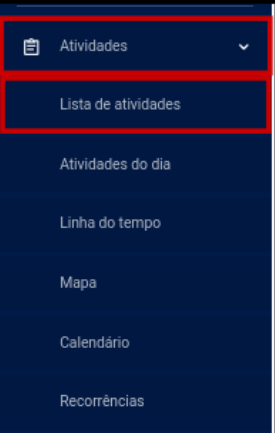 Passo 1: Acesse a plataforma do Field Control e vá em Atividades » Lista de atividades