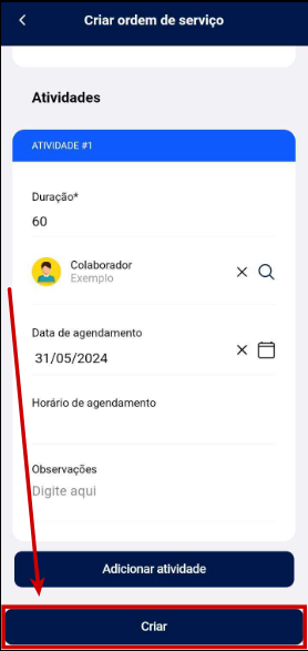 Passo 5: Com todos os campos preenchidos, basta clicar no botão "Criar" e a sua ordem de serviço será gerada em seu painel
