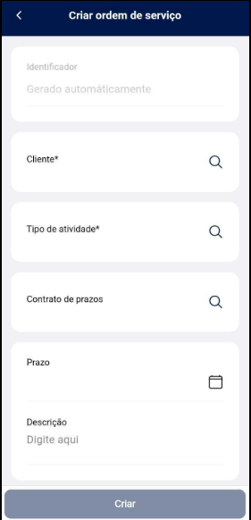 Passo 2: Agora, na tela de cadastro, preencha as informações da ordem de serviço