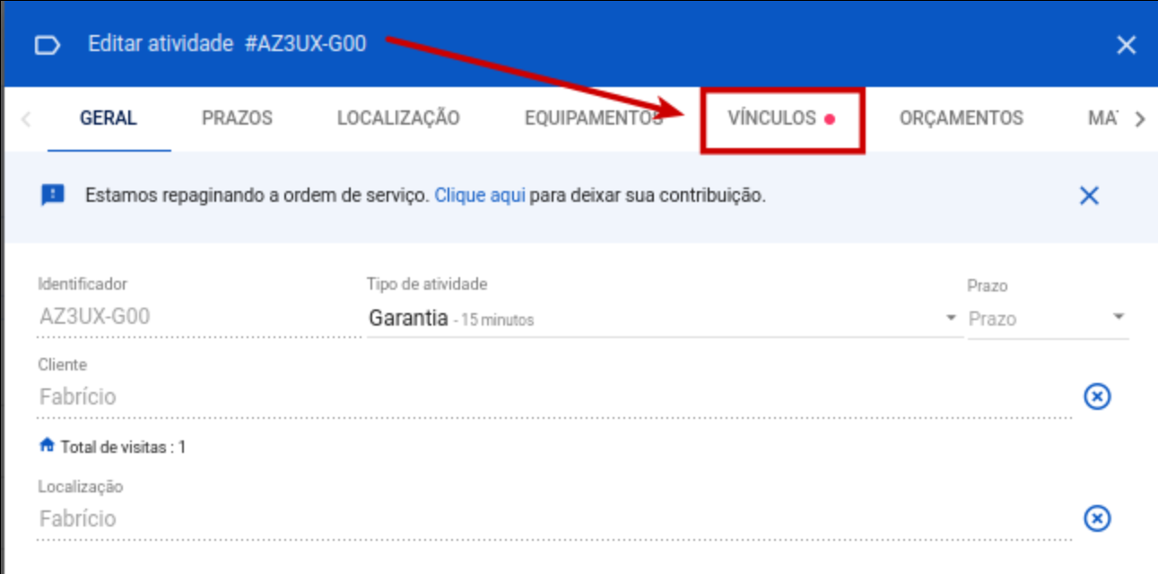 Neste artigo vamos falar um pouco sobre a aba "Vínculos" na ordem de serviço. Esta tela de setores e ambientes é uma novidade no Field, e hoje exploraremos suas funcionalidades.