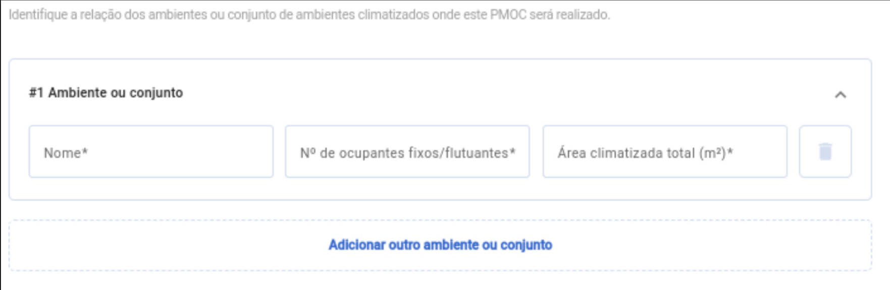 Caso seja necessário, você pode adicionar mais ambientes. Basta clicar em "Adicionar outro ambiente ou conjunto"