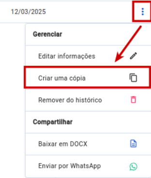 Depois de finalizado, você pode duplicar o PMOC e alterar apenas os campos que deseja. Para isso basta clicar nos 3 pontinhos ao lado do PMOC, e clicar em "Criar um cópia"