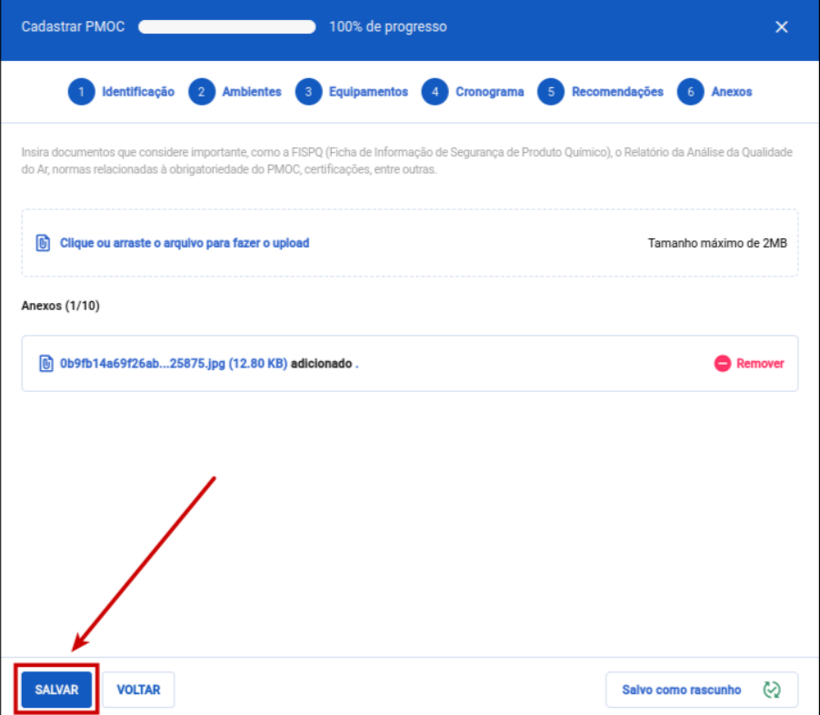 Agora, basta clicar em "Salvar", e seu PMOC está finalizado!