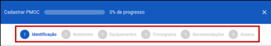 Passo 2: clique no ícone “+” para cadastrar um novo PMOC