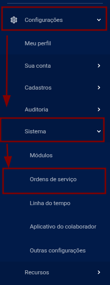 Para possibilitar que a busca inteligente encontre endereços fora do Brasil, é necessário realizar uma simples configuração, acesse o menu lateral Configurações >> Sistema >> Ordens de serviço: