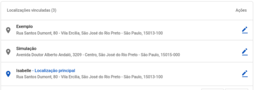 Não se esqueça de selecionar o endereço principal, como indicado na imagem acima. Caso precise editá-la basta clicar em “Editar” ao lado da localização que deseja alterar.