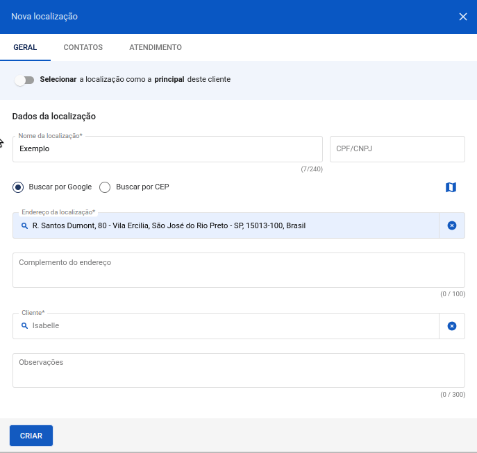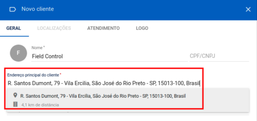 Se seu cliente é uma empresa, um condomínio ou um lugar público é possível digitar apenas o nome do local e a busca inteligente irá retornar o endereço correto.