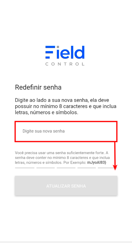 Passo 5: Preencha o campo necessário, e clique em “Atualizar senha”.