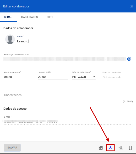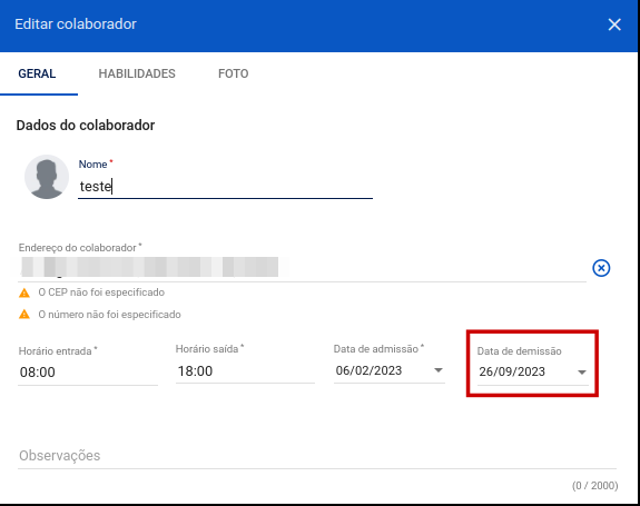 Passo 5: Na tela de edição, remova a data de demissão e salve a configuração.