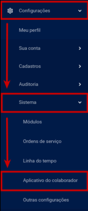 Passo 1: No painel de gestão vá em Configurações >> Sistema >> Aplicativo do colaborador.