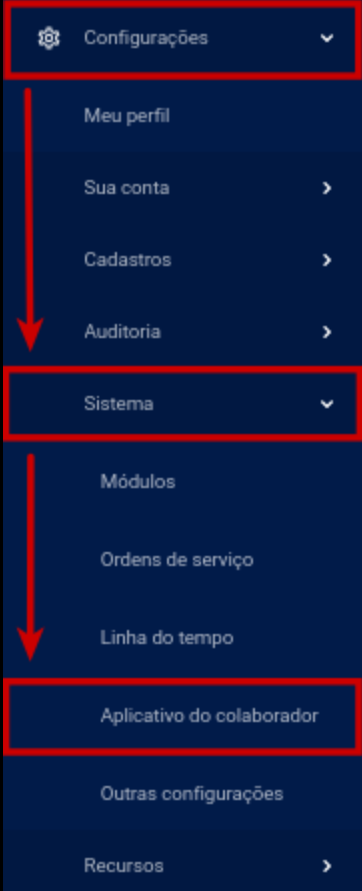Passo 1: Em seu painel vá em Configurações >> Sistema >> Aplicativo do colaborador.