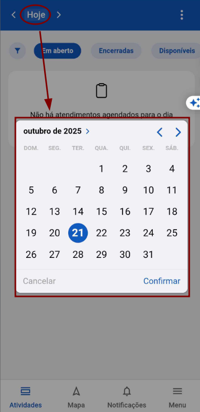Passo 2: Para utilizar o filtro e selecionar uma data específica, basta clicar em “Hoje”, e um calendário será aberto para que a data desejada seja selecionada