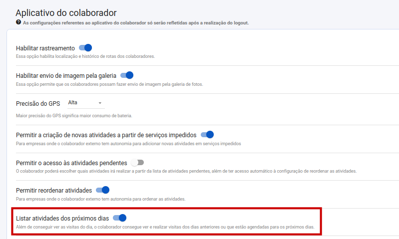 Com essa configuração ativada, o colaborador poderá ter acesso às atividades passadas e as próximas atividades que lhe foram delegadas.