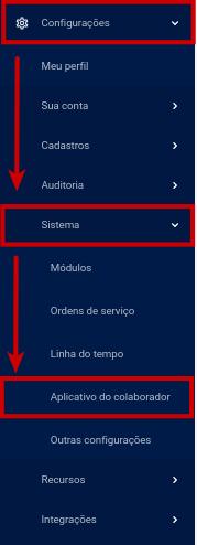 Passo 1: No menu esquerdo, clique em Configurações >> Sistemas >> Aplicativo do colaborador.