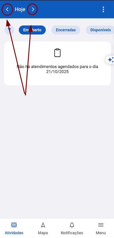 Passo 1: Feito isso, o colaborador poderá acessar as atividades passadas e as próximas atividades que ele possui em sua agenda ou usar o filtro de data para ver um dia em específico.