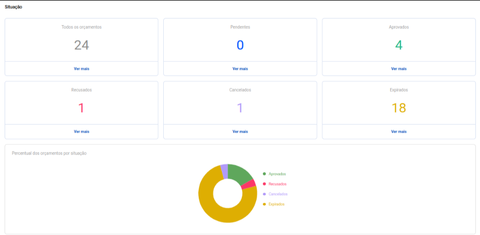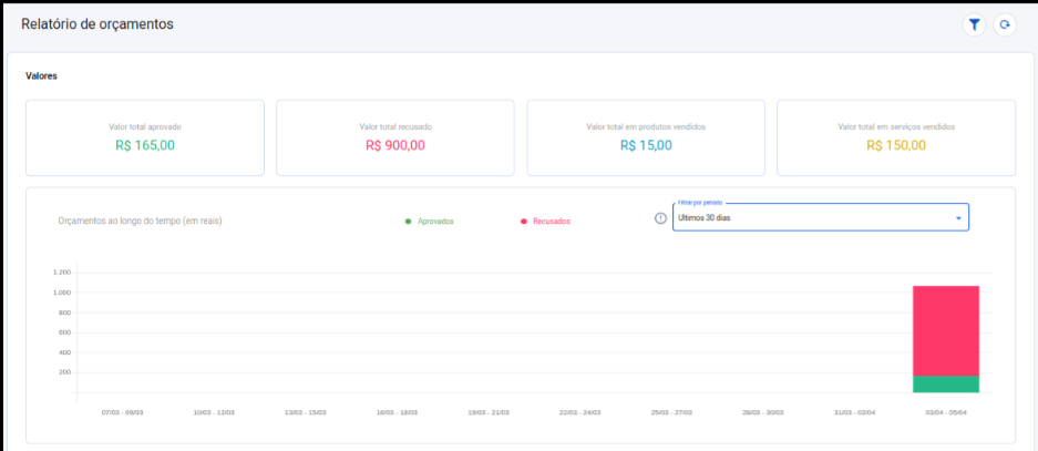 Gráfico com a relação de orçamentos aprovados e recusados (do período selecionado)