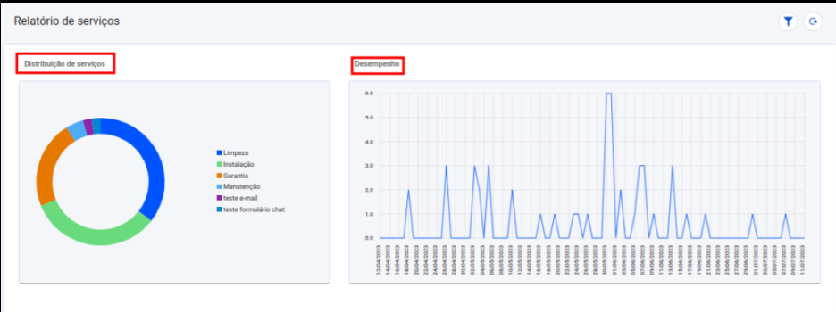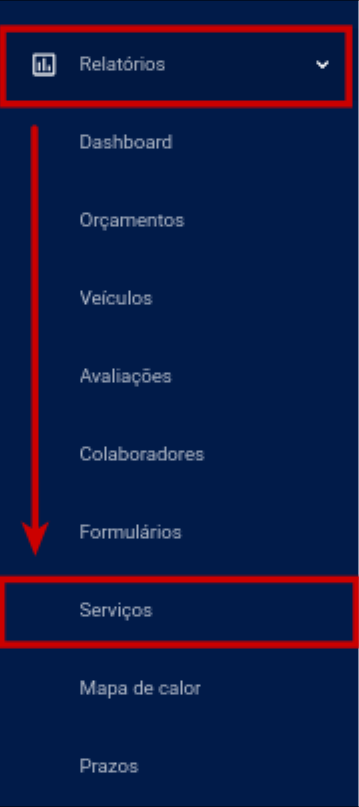 Para acessar o relatório basta acessar o menu lateral ir em Relatórios >> Serviços
