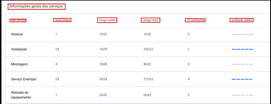 Ao acessar a aba “Serviços” e selecionar um período, será exibido o relatório dos colaboradores