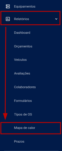 Para acessar basta acessar o menu lateral ir em Relatórios >> Mapa de Calor