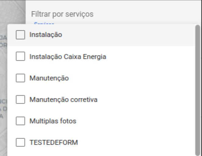 O filtro por serviço você escolhe qual o desejado entre aqueles que estão criados no seu Field Control.