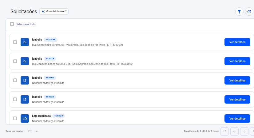 Na tela de solicitações é possível ver todas as solicitações recebidas