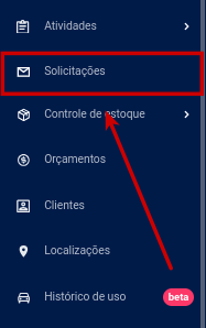 É possível acessar a caixa de solicitações pelo menu lateral esquerdo, em Solicitações.