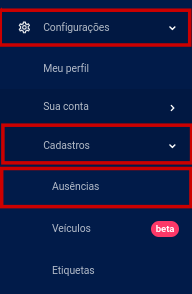 Passo 1: Vamos determinar o período em que esse colaborador ficará afastado, para isso vá em Configurações » Cadastros » Ausências