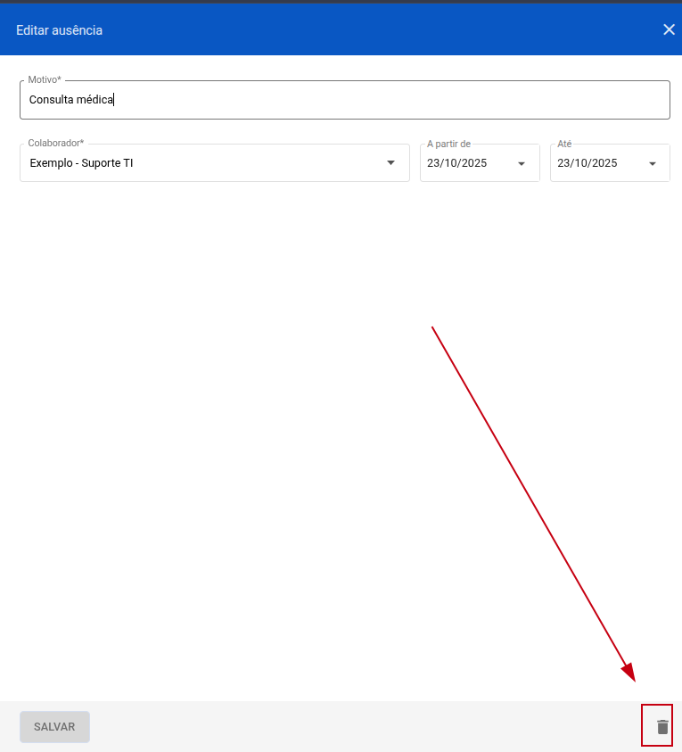 Durante o período determinado, o colaborador não poderá receber atividades para executar. Porém, caso o colaborador retorne antes do previsto, basta remover a ausência.