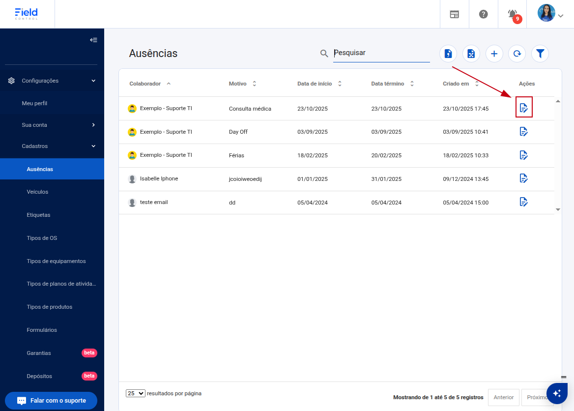 Tratando-se de gestão de pessoas, é comum que ocorram afastamentos temporários de seus colaboradores por razões médicas, férias, treinamento, entre outros. Por conta disso o Field Control tem a ferramenta ideal para registrar esses afastamentos