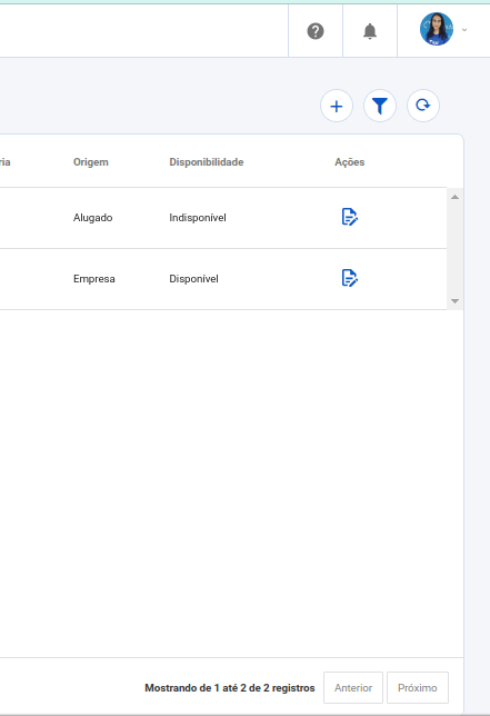 Após finalizar o cadastro, já é possível vê-lo listado. Se necessário, utilize os filtros para localizar com mais facilidade o veículo desejado.