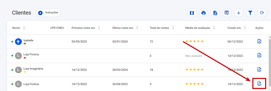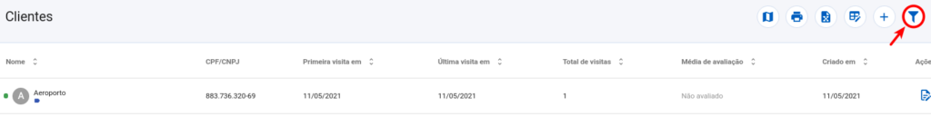 Passo 1: Na tela Clientes, clique no botão Filtrar.