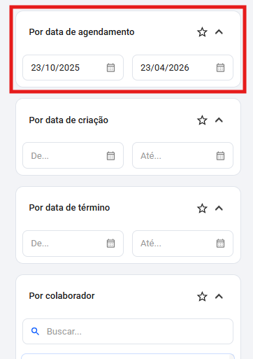 Passo 2: Altere o campo “Por data de agendamento” para o período em que deseja focar a busca.