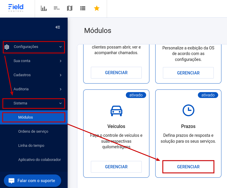 Você pode ler mais informações sobre o módulo acessando as Configurações » Sistema » Módulos e clicando em Ativar no módulo Prazos.