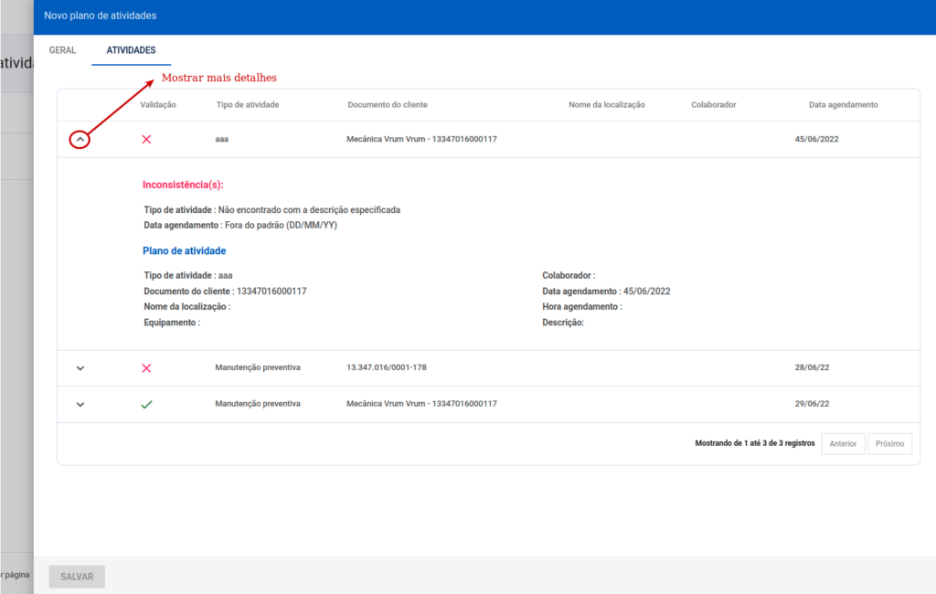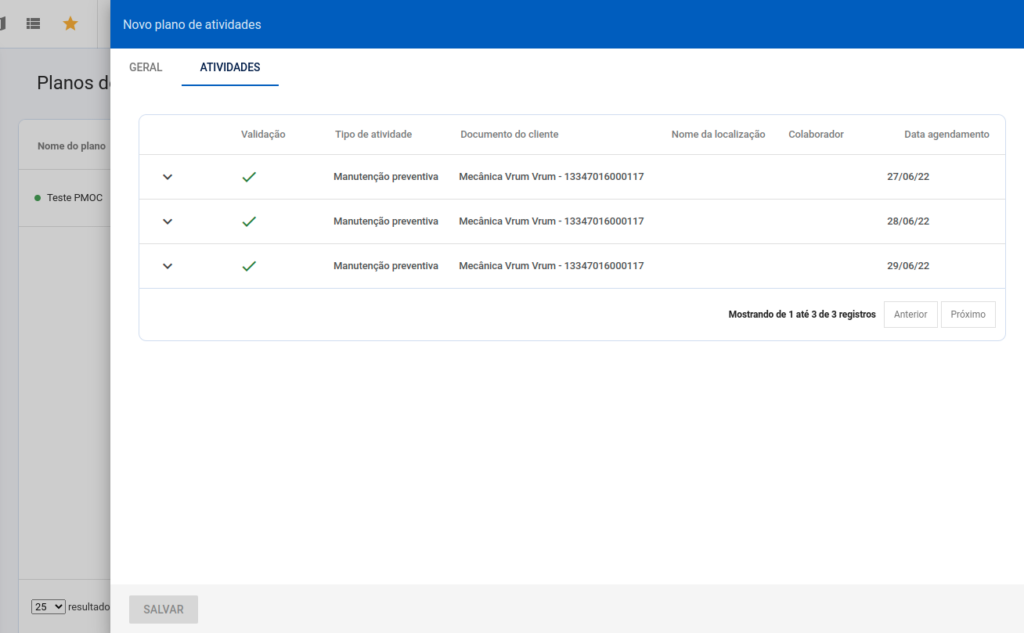 Com todos os dados preenchidos e a planilha corretamente inserida, basta clicar em Salvar e prontinho! Seu novo Plano de atividades já estará listado