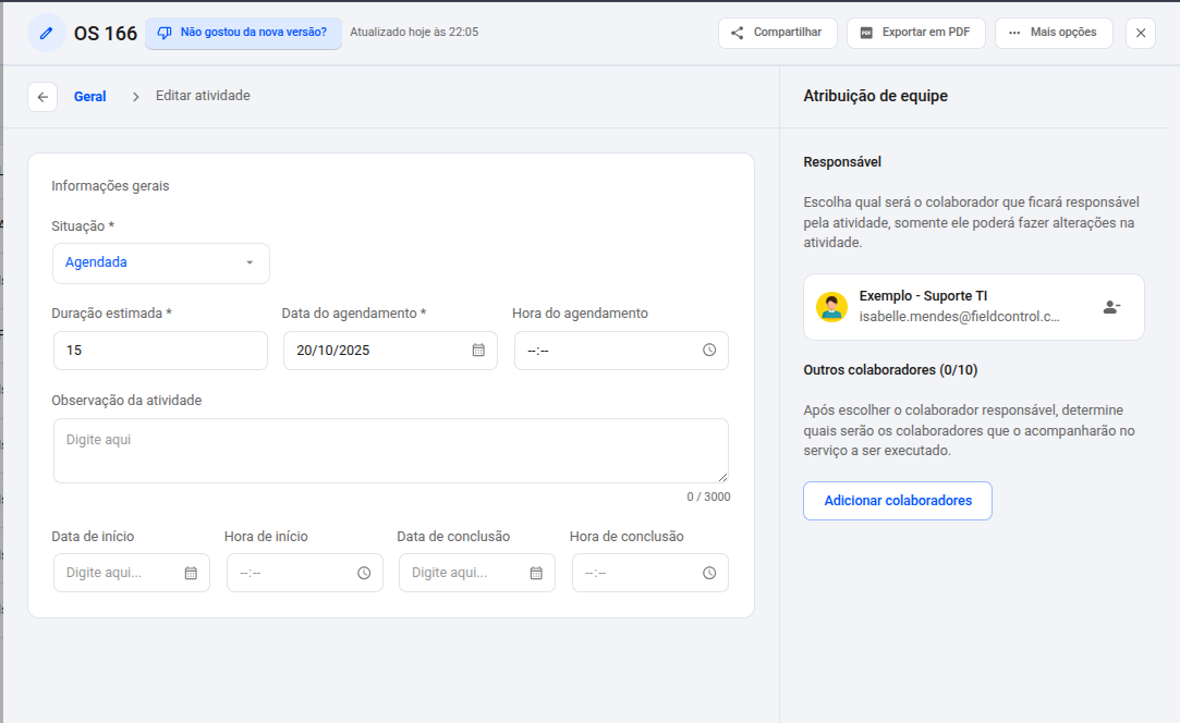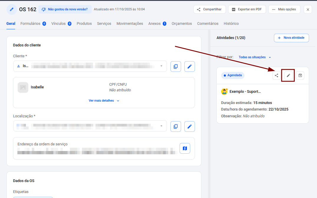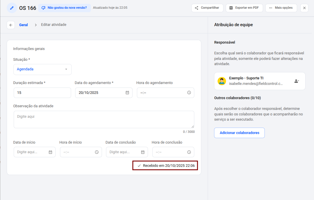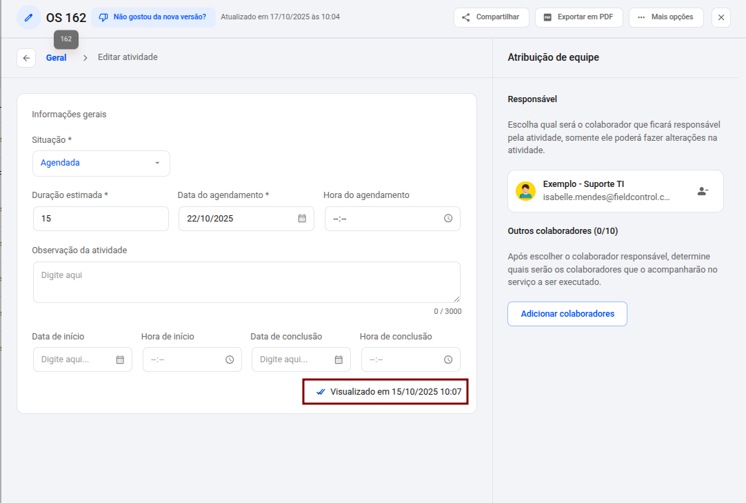 Dessa forma, você pode saber quando a ordem de serviço foi recebida e também quando ela foi visualizada pelo colaborador.