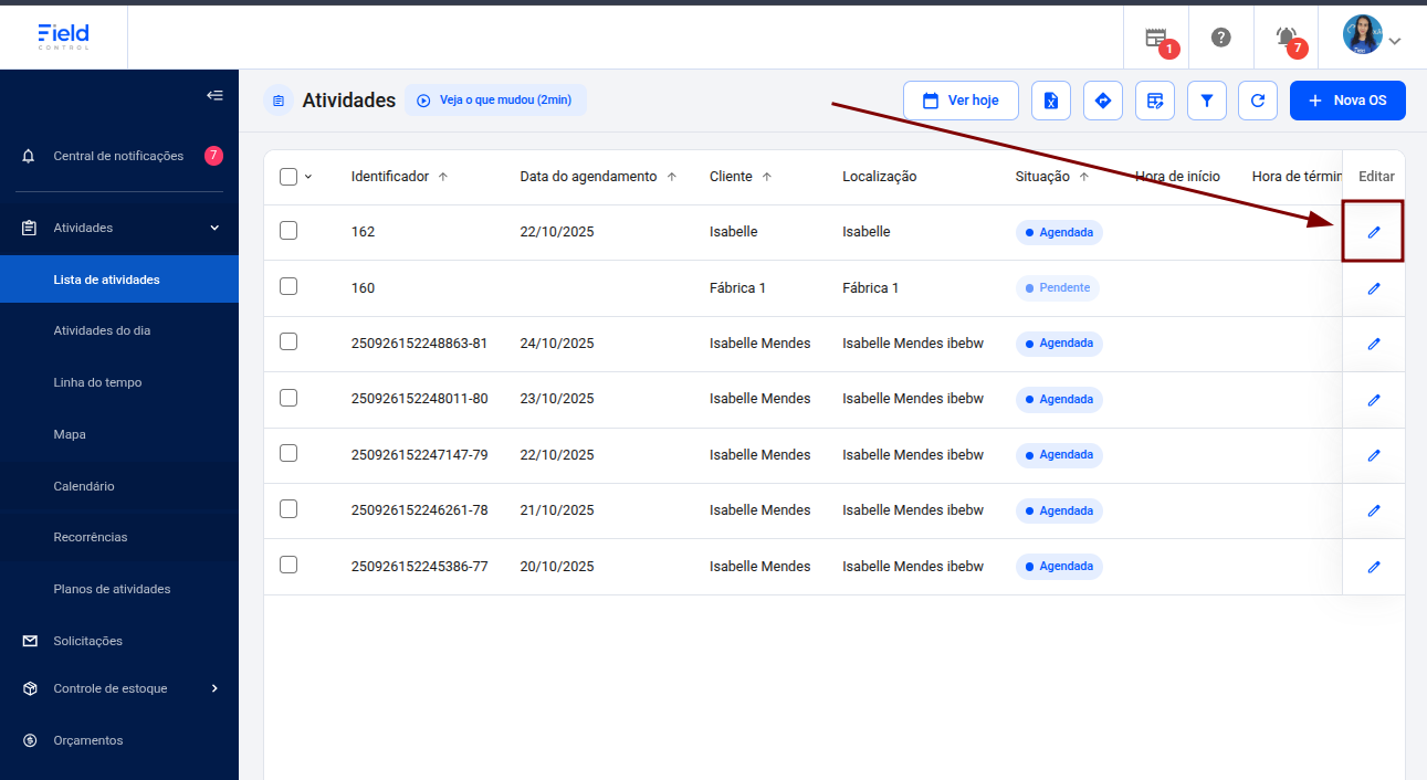 Passo 1: Em seu painel de gestão, acesse a atividade desejada