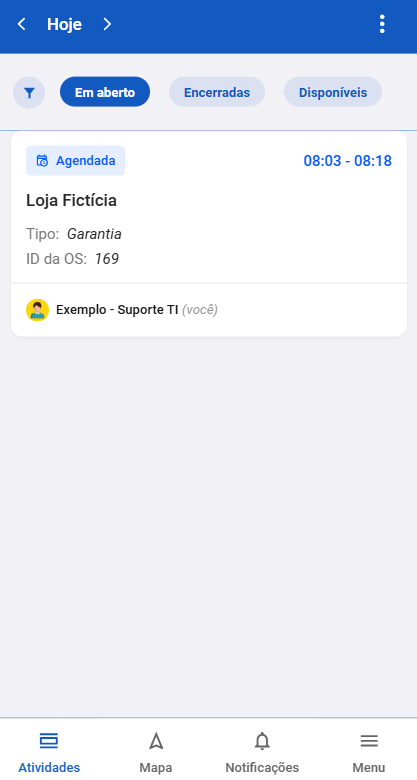 Passo 1: No aplicativo do colaborador, clique na atividade que deseja alterar a localidade.