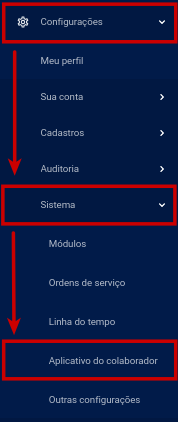 Passo 1: No menu esquerdo, vá em Configurações » Sistemas » Aplicativo do colaborador.