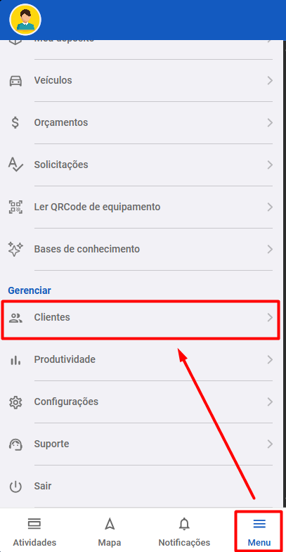 Passo 1: Para começarmos, acesse a tela de clientes. Para isso vá em Menu » Clientes