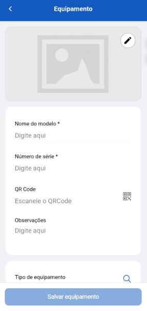 Passo 1: Agora preencha os campos com as informações do equipamento, como nome do modelo, número de série e outros campos