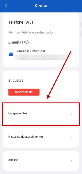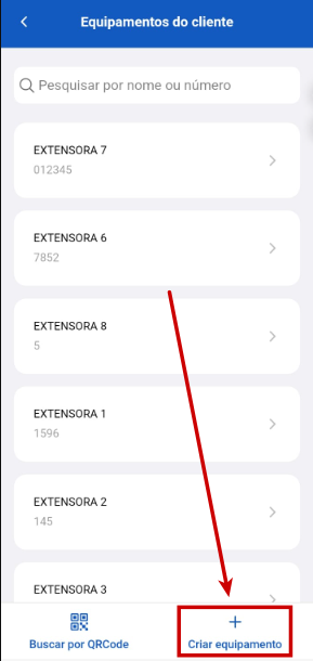 Passo 2: Selecione o cliente em que deseja cadastrar o equipamento