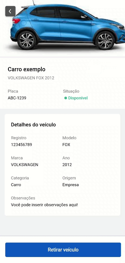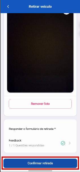 Passo 4: Com todos os campos preenchidos corretamente, clique em "Confirmar retirada" para poder utilizar o veículo.