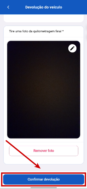 Passo 2: Clique no botão "Devolver veículo" e preencha os dados solicitados como quilometragem final, um breve comentário se necessário e a foto do hodômetro.