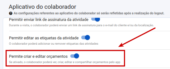 Passo 2: Agora, habilite a opção “Permitir criar e editar orçamentos” e clique em “Salvar”