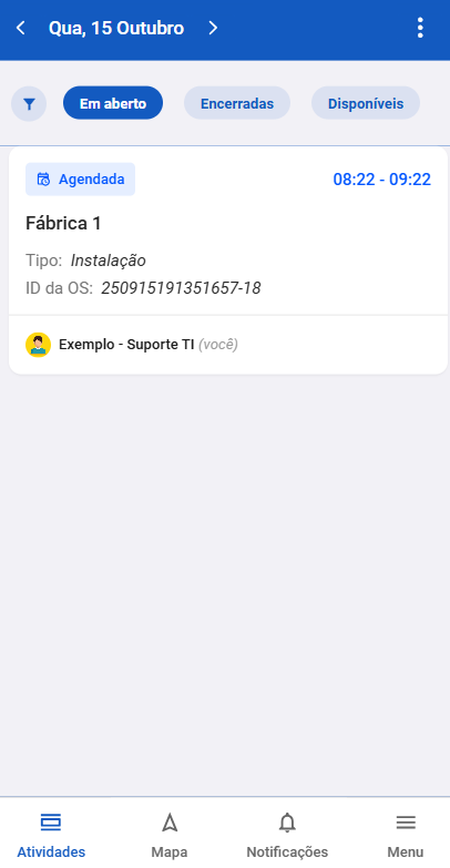 Passo 1: No aplicativo do colaborador, acesse a atividade que deseja
