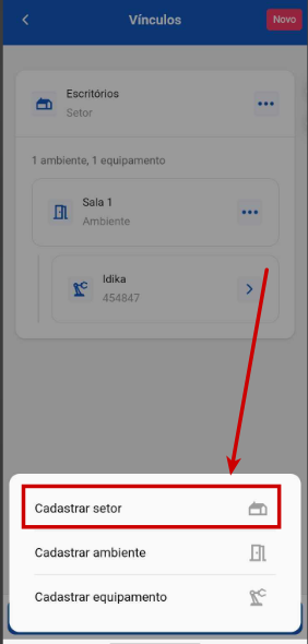 Passo 3: Nessa tela, clique em "Cadastrar novo" e selecione "Setor"