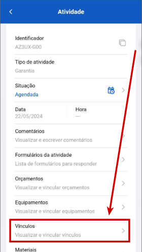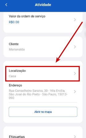 Passo 1: Primeiro precisamos acessar a tela de Vínculos. Para isso, abra a atividade que deseja e vá em Localização