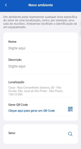 Passo 3: Nessa tela, você pode vincular lendo o QR Code do setor/ambiente, ou adicionar manualmente