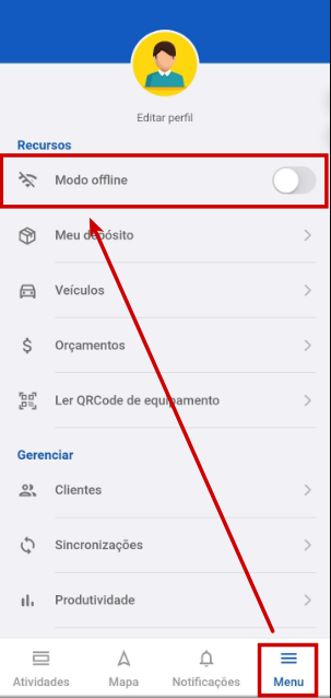Outra possibilidade, é que o colaborador esteja com a internet instável. Nesse caso, é indicado que o técnico ative o modo offline, e realize a sincronização assim que estiver com uma internet estável